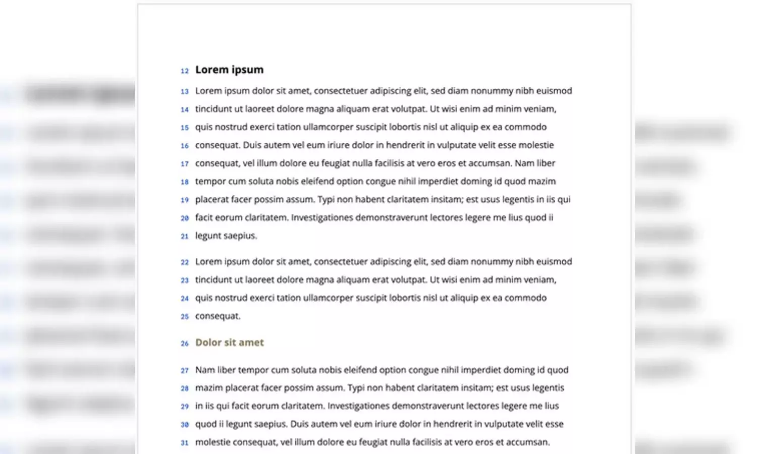 The numbers are automatically calculated next to each line in the document, and can be configurable for the entire document, a page or a specific section. Moreover, these numbers are preserved when printing.