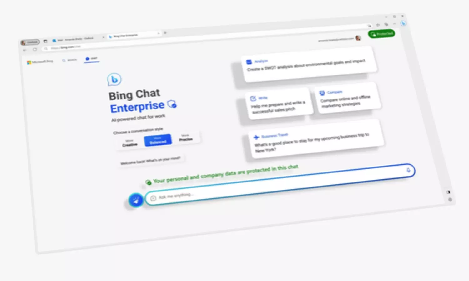 "Whether researching industry insights, analysing data, or looking for inspiration, Bing Chat Enterprise gives people access to better answers, greater efficiency and new ways to be creative."