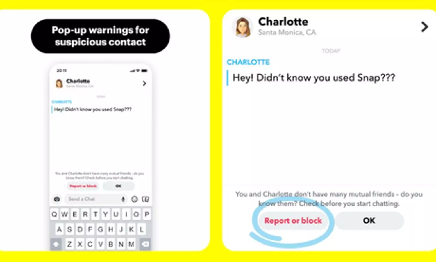 The In-App Warnings is a new feature that sends a pop-up warning to a teen if someone tries to add them as a friend when they don’t share mutual contacts or the person isn’t in their contacts.