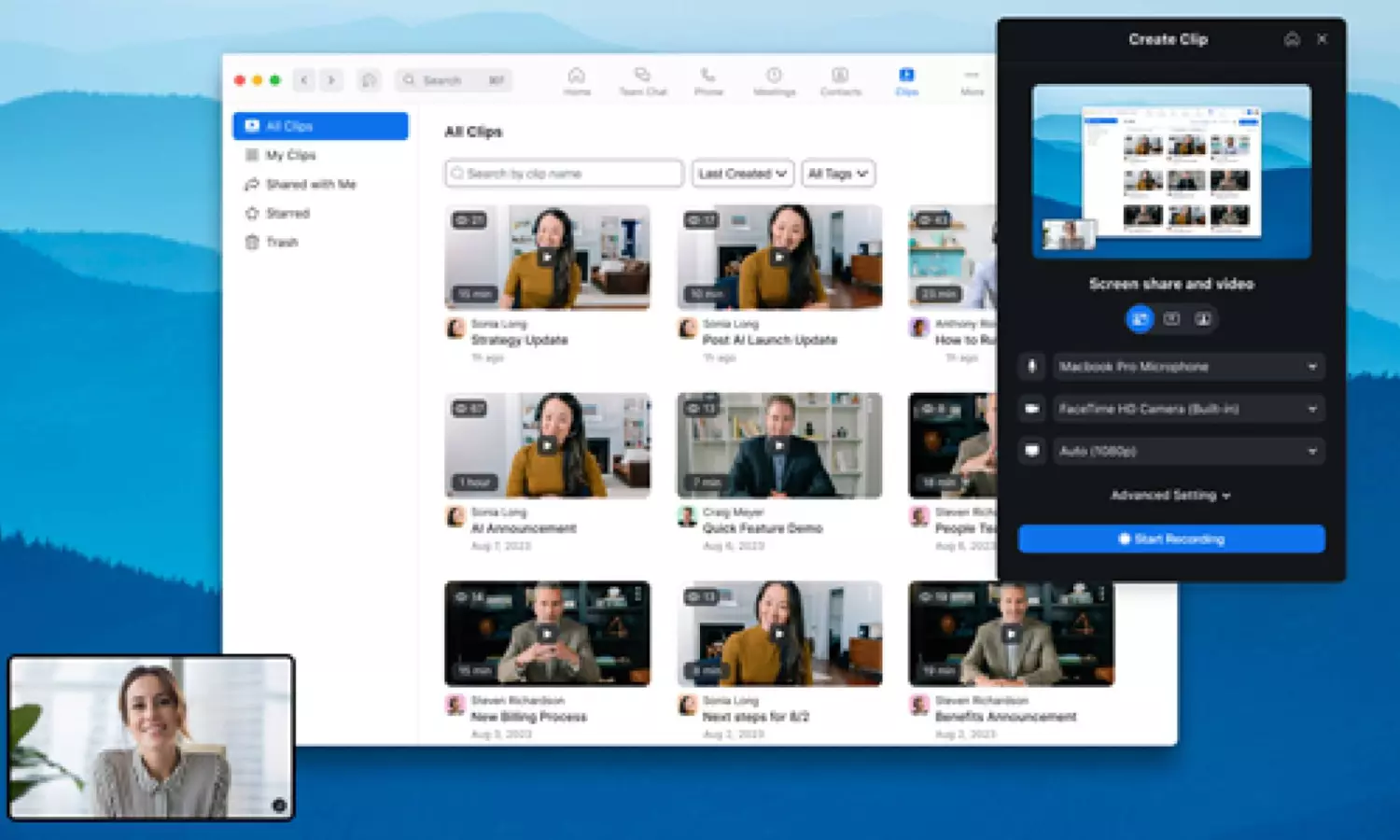 With Zoom Clips, users can record their video and screen and set viewing permissions to share with others. Clips are stored in a user's centralized content management system for simple search and discovery and to promote engagement. Team members can comment on the videos, and creators can track video views.