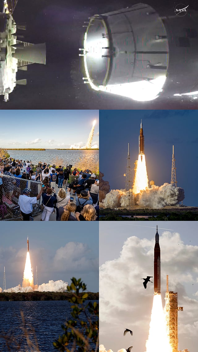 People gather as NASA's Space Launch System (SLS) rocket carrying the Orion spacecraft lifts off | NASA