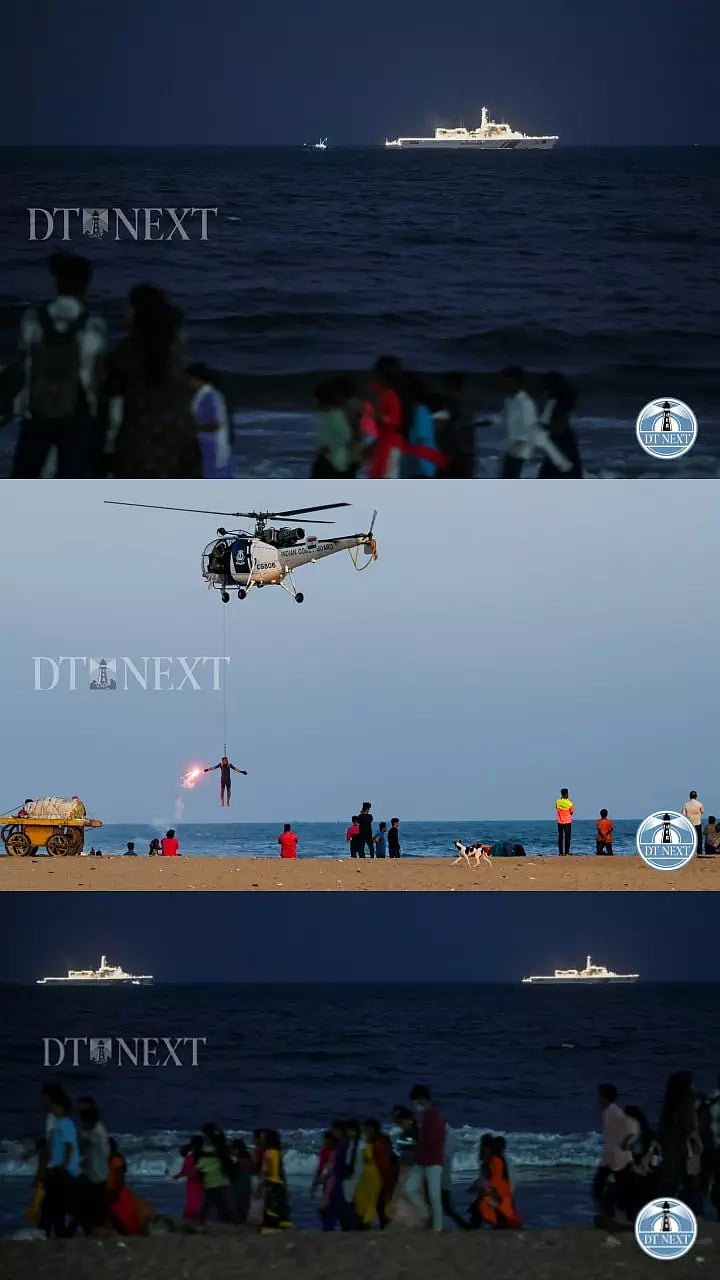 Coastal guards demonstrate drills in Marina on 48th Indian Coast Guard Day