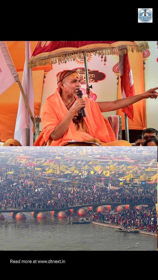 Shankaracharya Swami Avimukteshwaranand Saraswati outside his camp during the ongoing Magh Mela 2026 | PTI