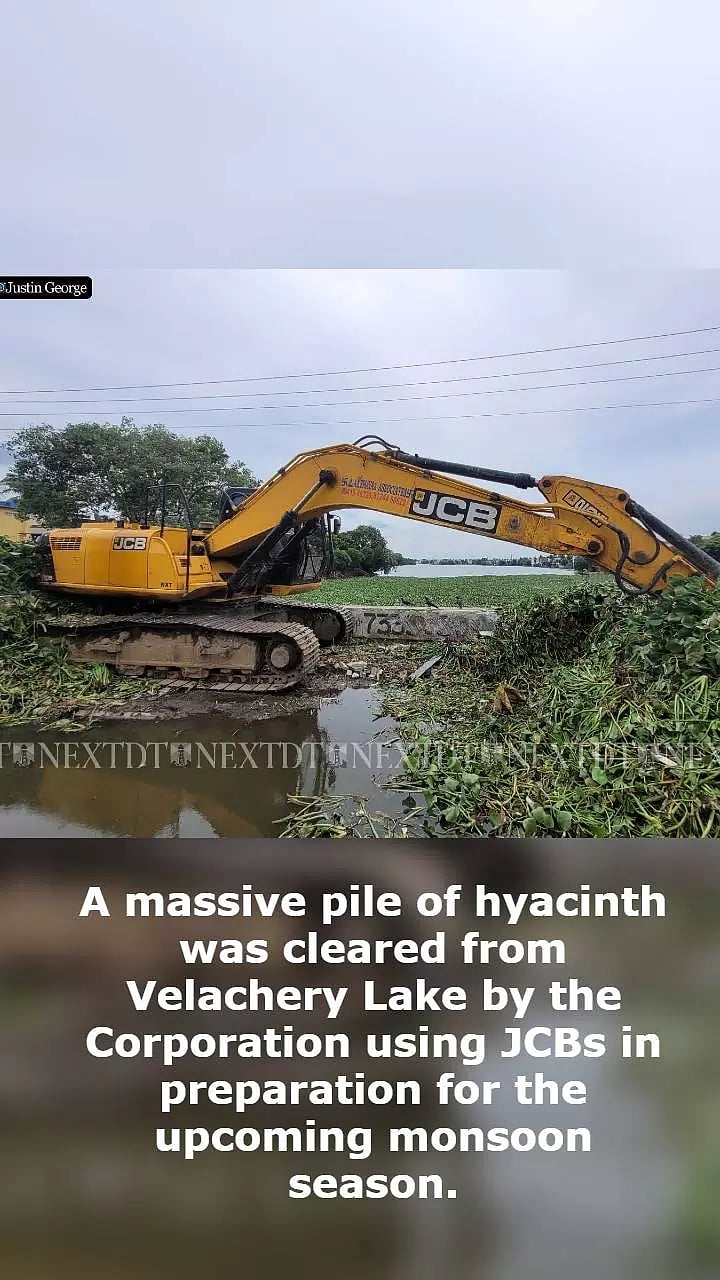 Massive pile of hyacinth was cleared from Velachery Lake by the Corporation for the upcoming monsoon season