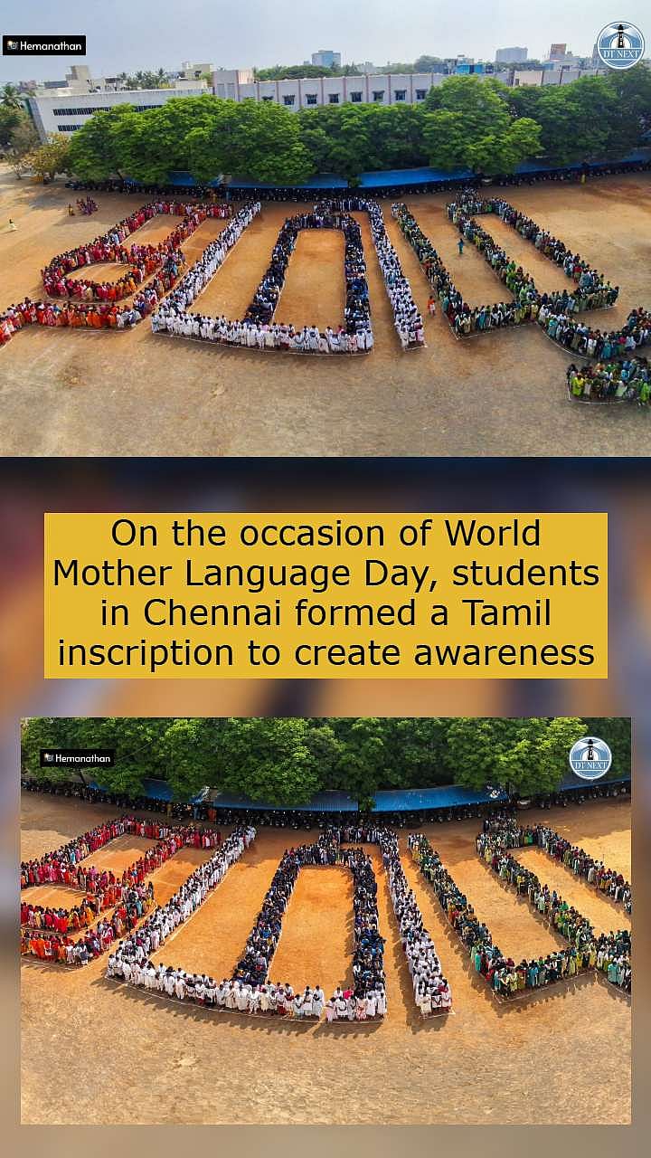 On the occasion of World Mother Language Day, students in Chennai formed a Tamil inscription to create awareness