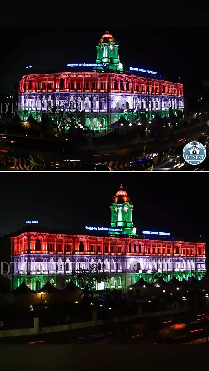 Ripon Building , the iconic structure in Chennai dazzles in tri-Colours of the Indian flag , illuminating the spirit of patriotism ahead of Republic Day.