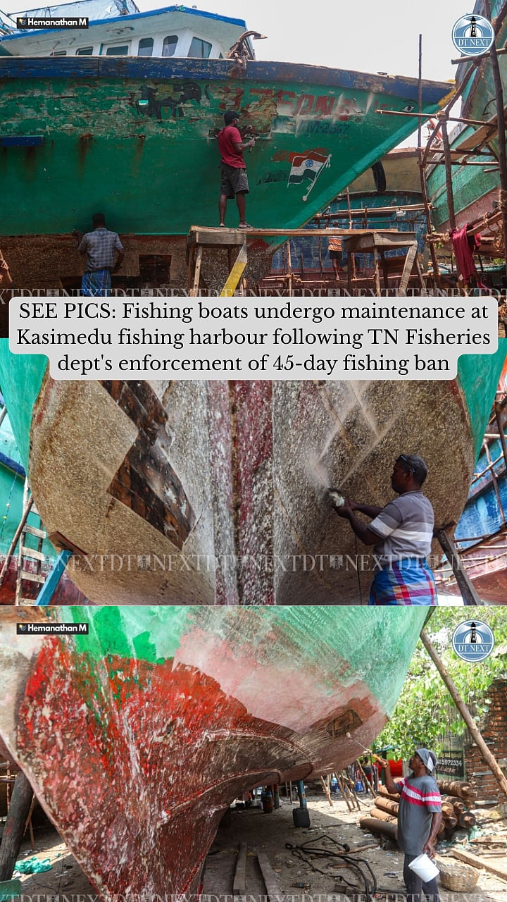 SEE PICS: Fishing boats undergo maintenance at Kasimedu fishing harbour following TN Fisheries dept's enforcement of 45-day fishing ban