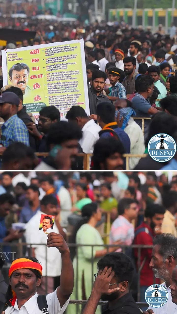 Supporters of 'Captain' Vijayakanth swarm the road as he is on his final journey.