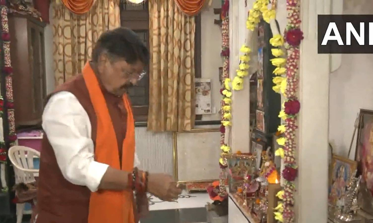 BJP candidate from Indore-1, Kailash Vijayvargiya offers prayers at his residence in Indore.