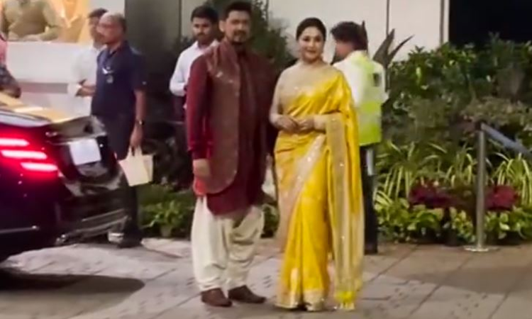 Madhuri Dixit Nene and Jackie Shroff leave for Ayodhya to attend the 'Pran Pratishtha' ceremony.