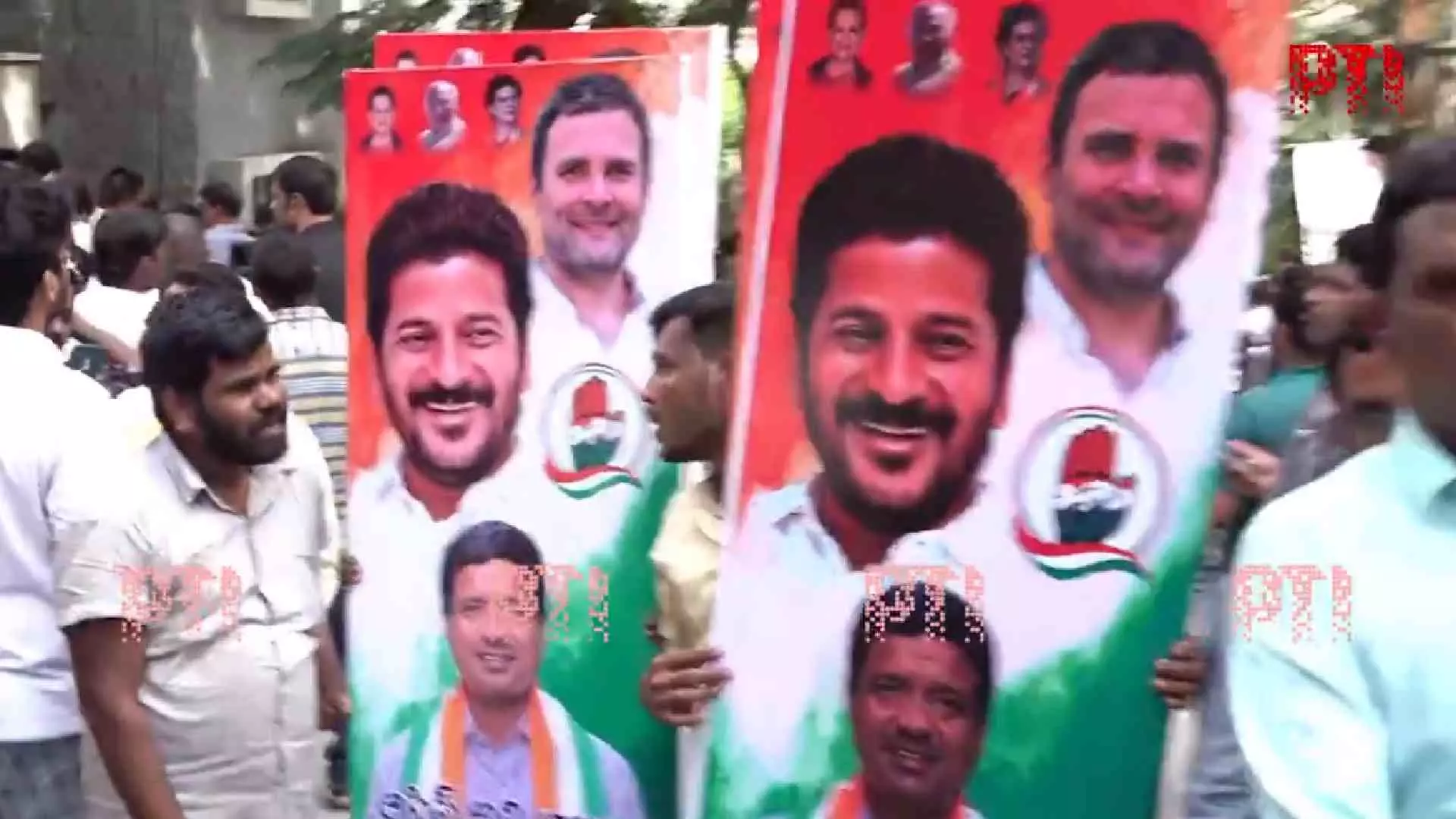 Visuals outside Revanth Reddy's residence in Hyderabad as trends show Congress leading in Telangana Assembly elections 2023.