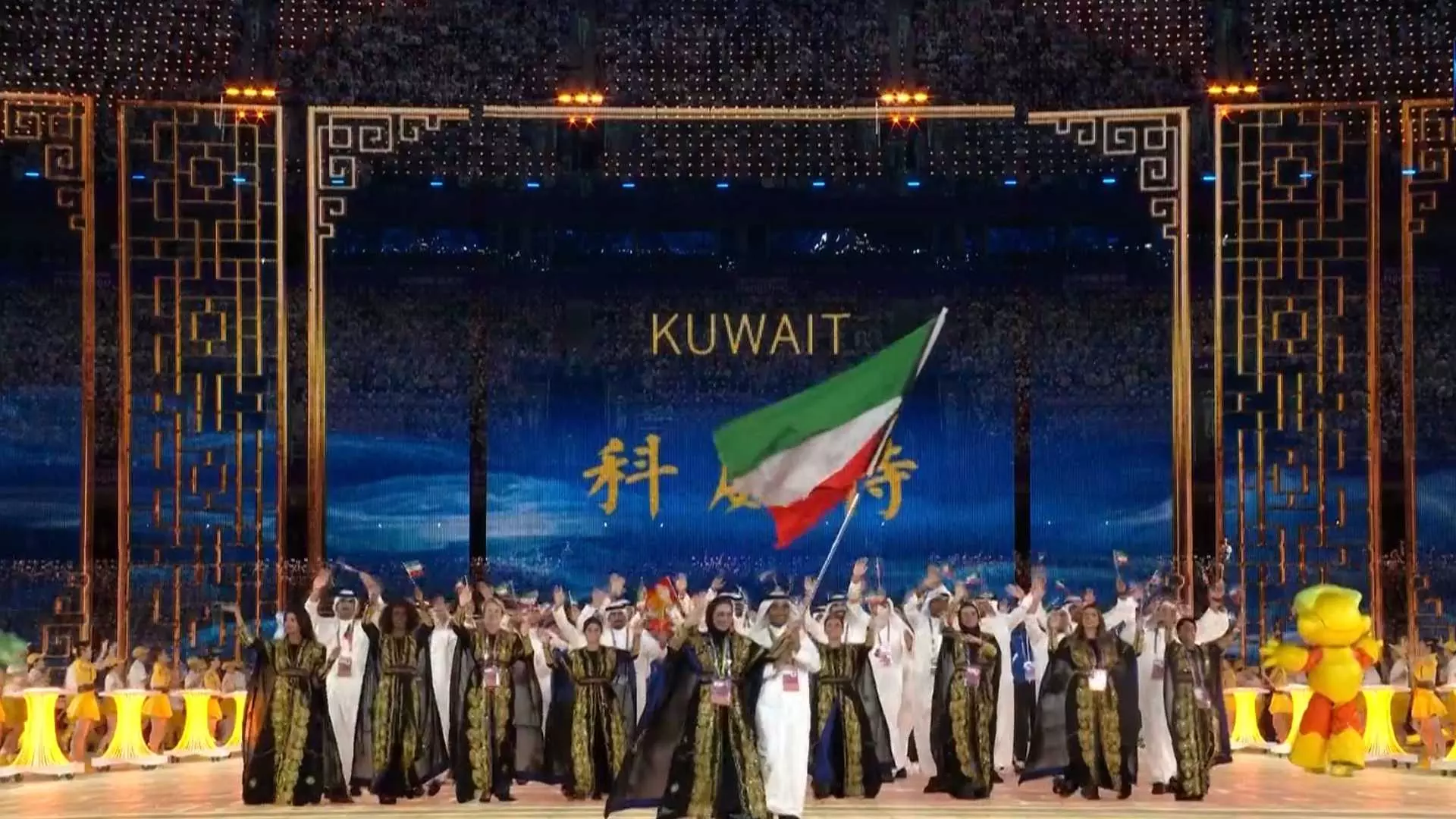 The Kuwait athletes walk in with a quintessential... ... Asian Games 2023 Opening ceremony live: Asian Games declared open