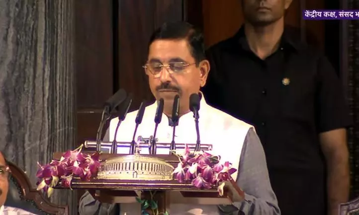 Parliamentary Affairs Minister Pralhad Joshi says, "Today onwards, our two Houses of the Parliament shall have sittings in the new Parliament building. We all know that this Central Hall has witnessed the transfer of power from Britain to Bharat...