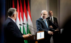 Netanyahu and Orban at a joint press conference during the former’s visit to Hungary