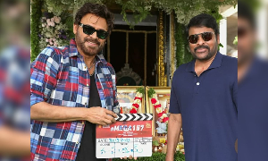 While Venkatesh Daggubati gave the first clap, the camera was switched on by Allu Aravind for the muhurat shot. Director K Raghavendra Rao directed the first shot for 'Mega157'.