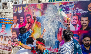 Across the state, fans danced to the beats of drums and burst crackers to mark the release of the film which boasts of a cast including top Indian actors Aamir Khan, Nagarjuna, and Upendra.