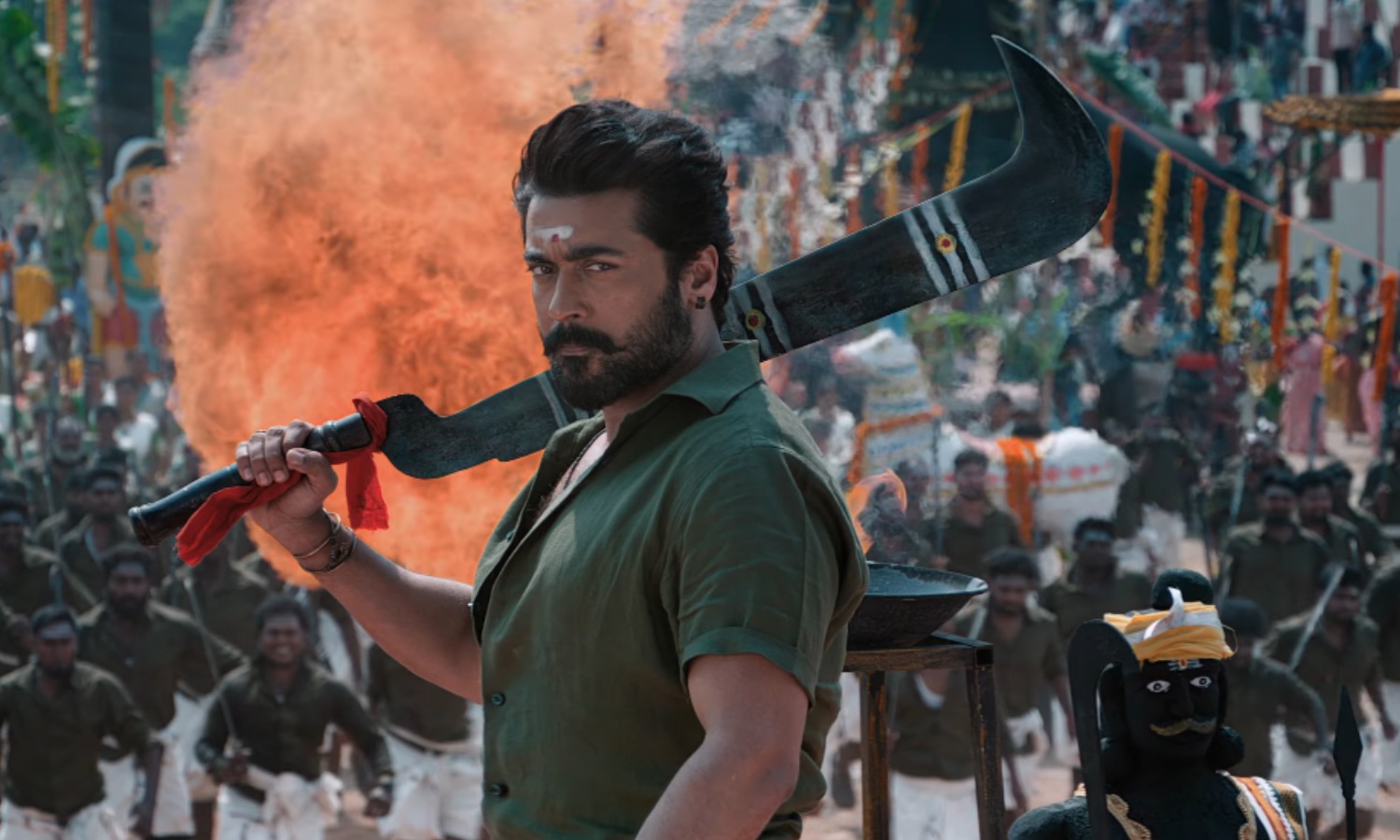 The teaser opens with brief visuals of the deity Karupannasamy before shifting focus to the man of the moment, Suriya. Sporting a sharp and stylish look, he appears to be playing a lawyer. The 103-second video, peppered with stunning visuals and action-packed scenes, also shows him playing a villager.
