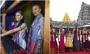 Meanwhile, a group of Miss World contestants from nine countries visited the Lord Lakshmi Narasimha temple at Yadagirigutta in traditional Indian attire, wearing sarees.