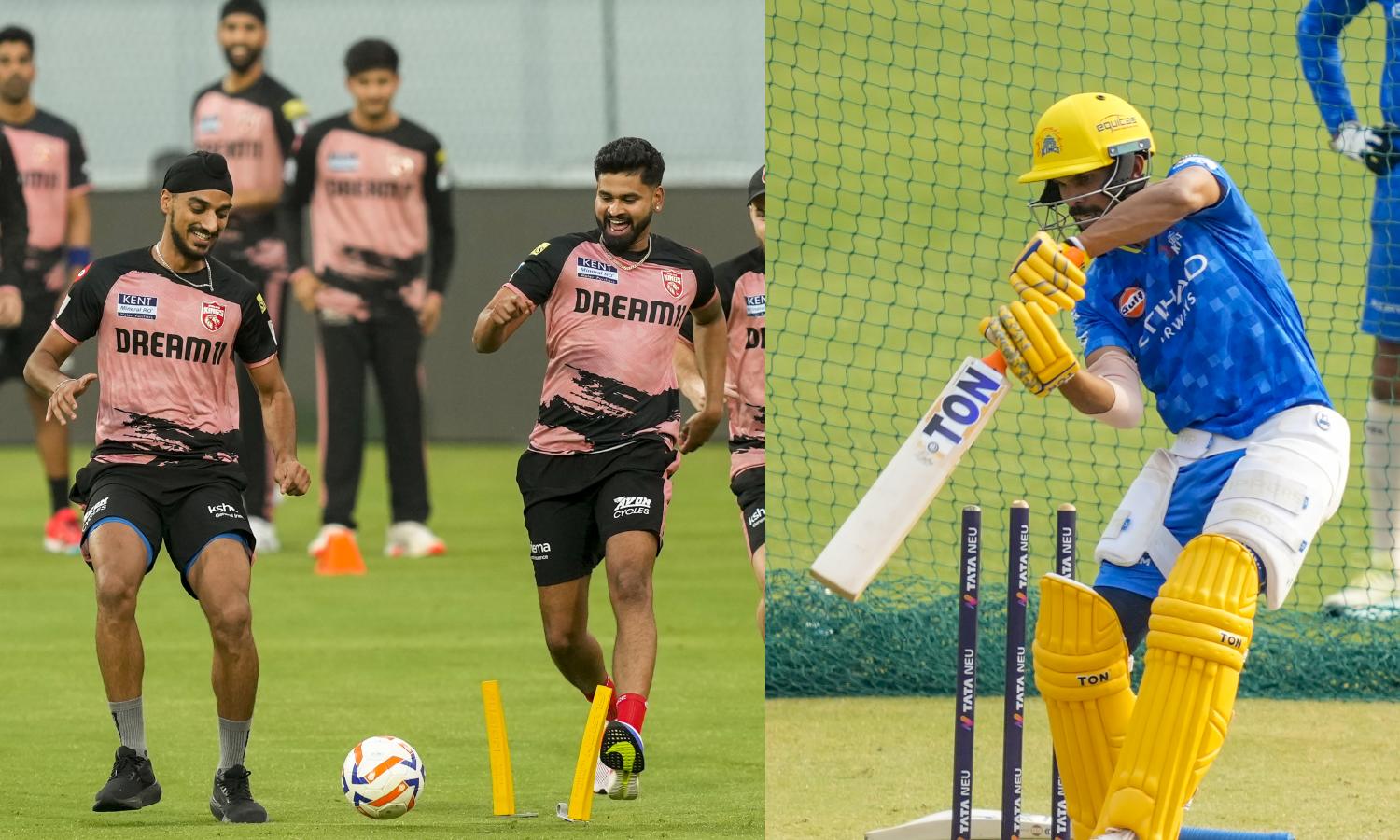 Punjab Kings players during practice session; CSK skipper Ruturaj plays a shot during practice session