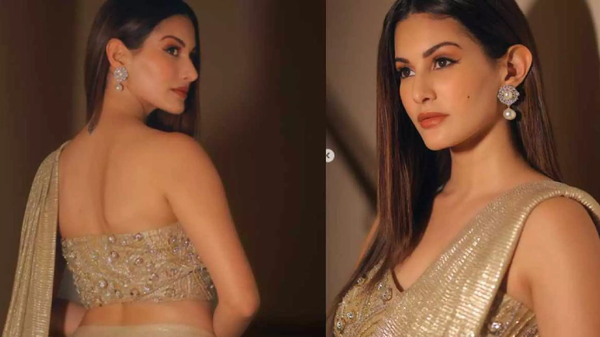 Amyra Dastur shimmers in a golden saree