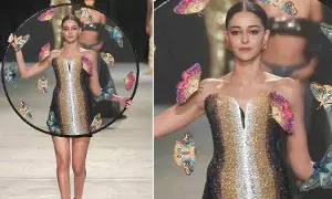 PARIS: Actor Ananya Panday made heads turn with her showstopper look for ace designer Rahul Mishra at the ongoing Paris Haute Couture Week 2024. Ananya walked the ramp wearing a butterfly sieve dress. Basically, she carried a sieve adorned with butterfly motifs with her hands. It seems like it is attached to the mini dress underneath in black colour.