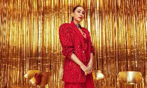 Add an extra pinch of glamour to your gown by adding a jacket and gloves. A beautiful gown with cut-out details on it and teaming up with a matching puffer leather jacket and gloves, you can also slay the festive look like Sonam Kapoor did.