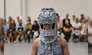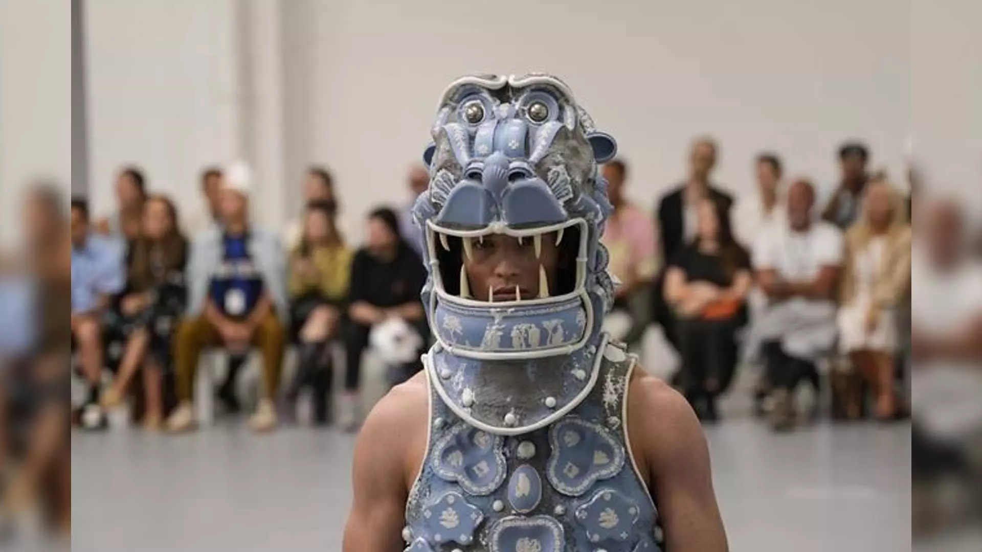 British designer Charles Jeffrey proposed a joyful Loverboy collection for a new Carolean era in Britain driven by the people and inspired by the tumultuous season when King Charles III ascended the throne amid political turmoil.