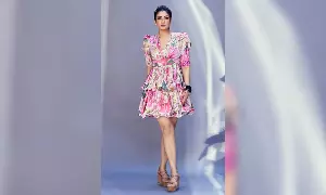 Taking to Instagram, Raveena, who has 8.5 million fans shared a string of photos, wherein she can be seen wearing a pink and white floral short dress.