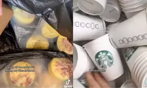 "Starbucks store closing (as a reel)" wrote Anna Sacks on Instagram. The clip shows Anna opening the trash bags and finding them full of pre-packed food. In another bag, she finds a huge amount of ground coffee, croissants, and other bread items. A few bags also contained unused napkins, spoons, plates, cups, and other things.