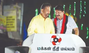 Actor and MNM president Kamal Haasan on Saturday campaigns for DMK candidates in Chennai