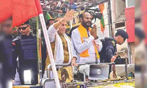 Defence Minister Rajnath Singh campaigning for John Pandian in Rajapalayam on Monday