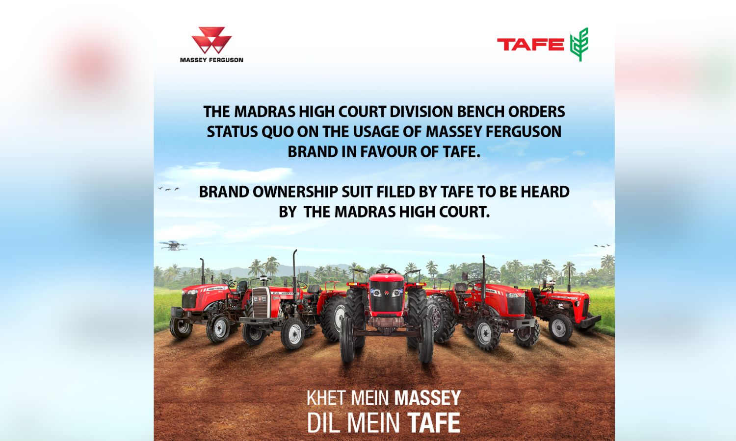 CHENNAI: A Division Bench of the Madras High Court by its ruling on Monday directed status quo to be maintained in favour of Tafe with regard to Tafe’s use of the “Massey Ferguson” brand.