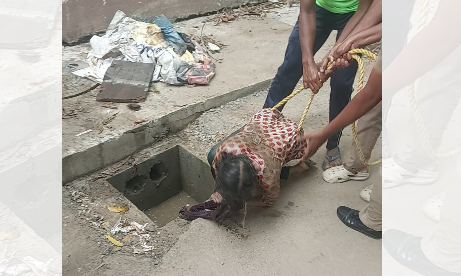 Personnel from Choolaimedu Police rushed to the scene on information and secured the woman from the silt catch pit