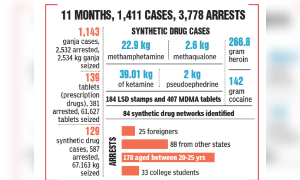 According to the city police data, between August 2024 and July 7 this year, they have arrested 534 people for being part of networks peddling synthetic drugs, of whom 178 are youngsters aged between 20 and 25 years. Among them, 33 are college students, police said.