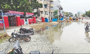 The pedestrians and two-wheeler riders using the Tambaram-Velachery Road are also put to suffer as contaminated water splashes onto them from every passing vehicle, leading to potential health risks. Even those visiting the Selaiyur Police Station are forced to walk through the dirty water.