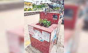 One of the damaged drinking water basins at Chetpet station falling under Southern Railway