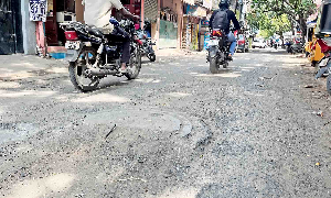 The commuters are left with no other option but to ride through the damaged road when traveling from Govindan Road. The ongoing Metro Water sewage pipeline installation work on the road has added to the traffic woes. Additionally, a government school is located on the street, resulting in the highest volume of traffic and congestion.