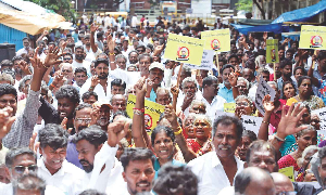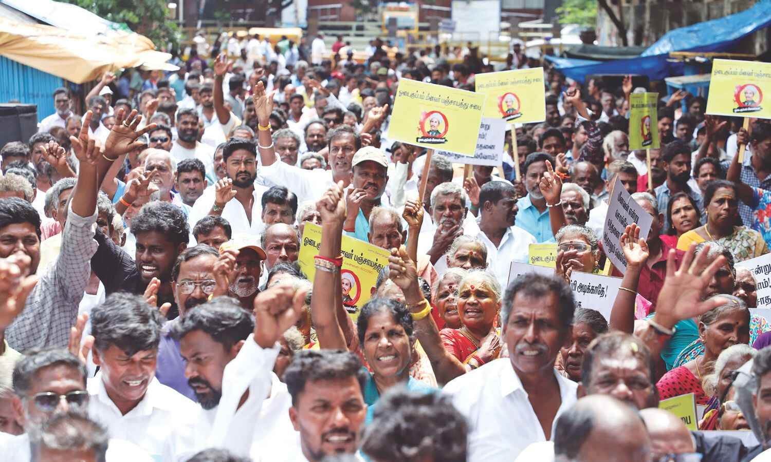 At a protest held outside the District Collectorate on Friday, organised by the South Chennai All Fishermen Village Council, representatives from more than 30 villages, including Uthandi, Chinna Neelankarai Kuppam, and Palavakkam Kuppam, came together to oppose projects ranging from Blue Flag certification for beaches to the sea bridge and energy infrastructure.