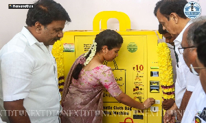 CHENNAI: Kickstarting the second phase of the 'Meendum Manjapai' campaign, mayor R Priya inaugurated an automated vending machine to dispense cloth bags at ward 106 of Anna Nagar zone (zone 8), near the MMDA post office.