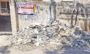 Commuters on Demonte Road, Santhome, lament over the construction waste being dumped on the side of the road, which connects Santhome High Road to Loop Road.