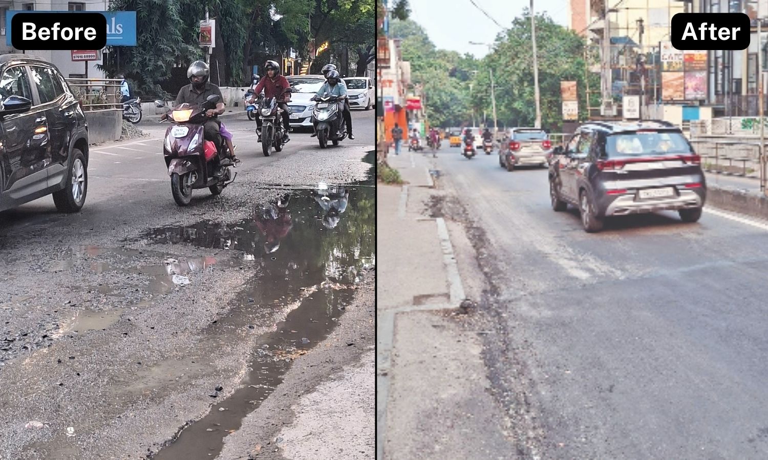 After the issue was reported, Corporation officials inspected the spot and re-laid the damaged stretch of Sterling Road and normal traffic flow was restored.