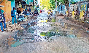 K Jayasurya, a resident of Kabilar Street, said, “The street often gets clogged with sewage, which overflows and stagnates at our doorsteps. It makes it very difficult to leave or enter our homes. Additionally, many pedestrians and motorists slip on the road and get injured. Sewage stagnates whenever there’s a function in the nearby mahal.”