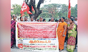 The protest was organised by the Tamil Nadu Rural Development Labour Union (TNRDLU).