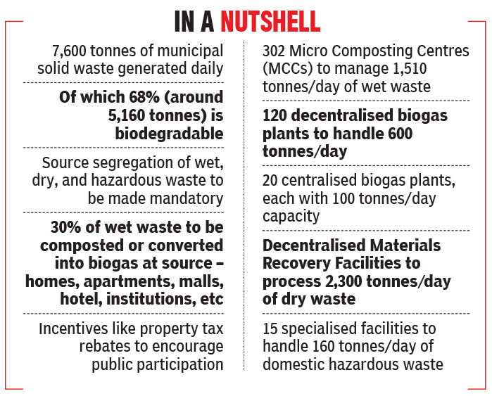 At present, Chennai generates approximately 7,600 tonnes of municipal solid waste (MSW) every day, of which 5,160 tonnes/day (68%) is biodegradable. “The GCI outlines a detailed wet waste management framework that begins at the household level and scales up through neighbourhood and city-wide infrastructure,” he said. “Source segregation of waste will be made compulsory across the city.”