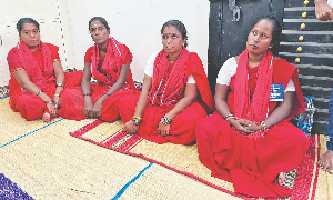 Inside the office, supporters arrive in silence. The women sit with only water bottles beside them. Geetha said welfare schemes cannot replace job security. “A meal is not a job. We need our work back in the Corporation,” she said. As dusk settles, the women continue their fast, hoping the city will listen. “How long will we wait?” Vasanthi asked. “As long as it takes.”