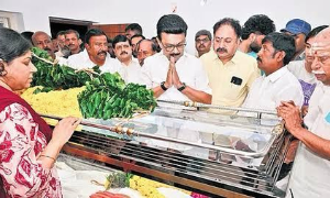 Tamil Nadu Governor RN Ravi, Chief Minister MK Stalin, and several ministers, including KN Nehru and Ma Subramanian, paid their respects at his T Nagar residence.