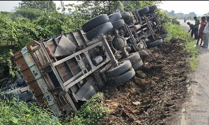 Lorry overturns near Sriperumbudur, cops make owner run in circles