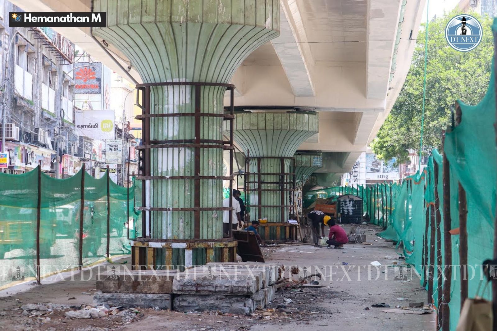 Workers at the site informed DT Next that they have compartmentalised the work to complete one stretch before moving to the next. “We’ve allowed the public to park vehicles beneath the flyover opposite Saravana Stores. After the renovation is complete, the area below the flyover in Purasawalkam High Road will be designated for car parking, while the space under the flyover on Hunters Road will be reserved for bike parking,” added a worker.