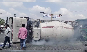 Tanker truck carrying 30 tonnes of concrete mix overturns on Bengaluru-Chennai highway