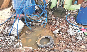 Overhead power cables kept in stagnant water near a junction box at Kannagi Nagar on Sunday